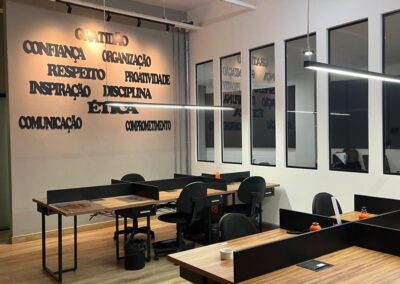 Construção de escritório completo dentro de galpão logístico na cidade de Cabreúva em São Paulo, com reforma completa de toda a rede elétrica e de dados.